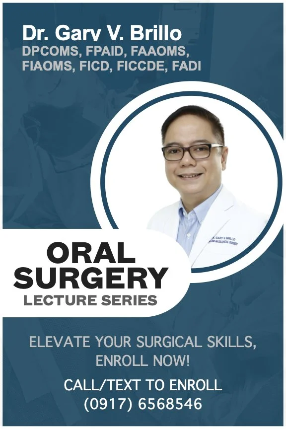 The lecture series is a comprehensive modular type that specifically addresses general practitioner's individual needs for enhancement on specific areas of oral surgery. It focuses on three main essential key points of learning namely, proper case evaluation and treatment planning, skilful delivery of treatment and prevention and management of complications. The program is designed to enhance a general practitioner's diagnostic skills, hone surgical competency to perform minor oral surgeries and be able to avoid or manage complications. At the end of course, the participant is expected to learn how to formulate a detailed treatment plan and be able to execute it based on standards of care and principles governing the practice of oral surgery.